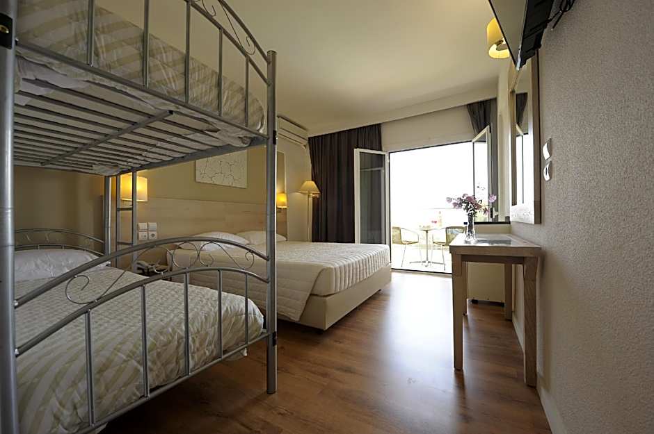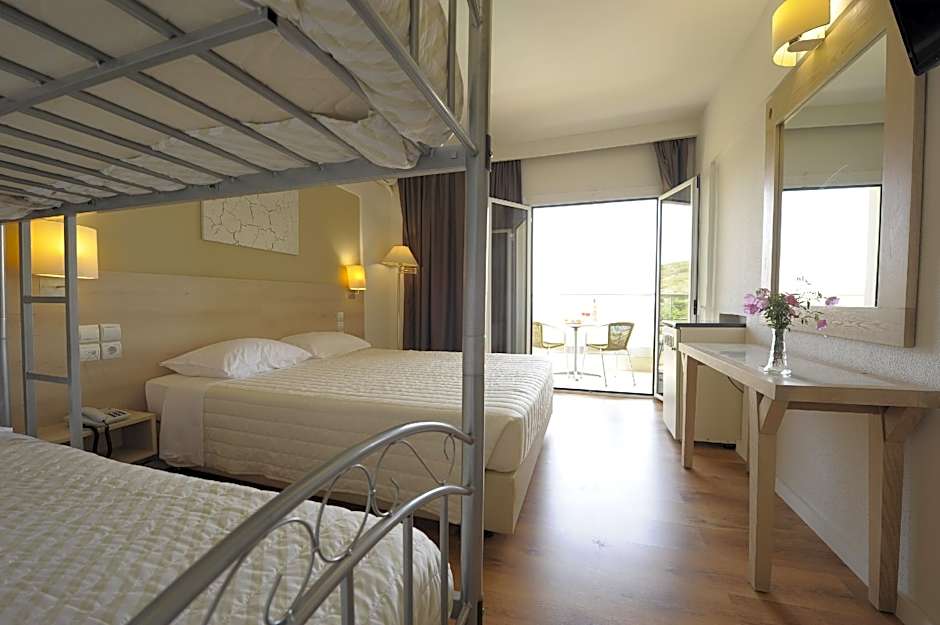 This air-conditioned triple room is consisted of of a flat-screen TV with satellite channels, a private bathroom as well as a balcony with sea views. The unit has 3 beds.